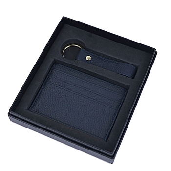 ชุดของขวัญธุรกิจกล่องพวงกุญแจหนังแท้สำหรับเป็นของขวัญองค์กรที่ใส่บัตรเป็นโลโก้ได้ตามต้องการ